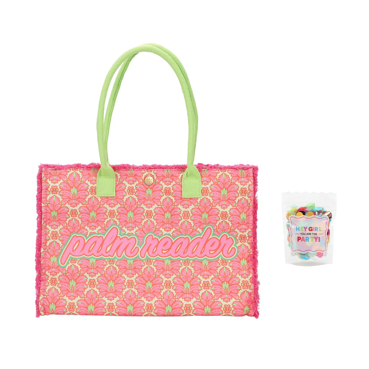 Bring instant sunshine wherever you go with the Packed Party Palm Reader Canvas Tote Bag — a statement carryall bursting with beach-club energy, playful colour, and feel-good vibes.