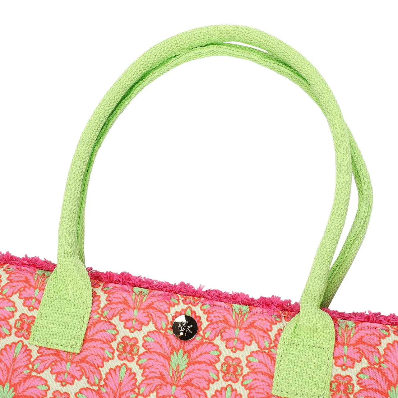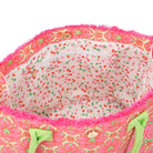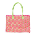 Designed in a bright seasonal palette with bold printed lettering, this eye-catching tote is finished with frayed fringe edging and sturdy corded handles for that perfectly relaxed, summer-ready look. Whether you’re heading to the beach, poolside lounging, weekend markets, or everyday errands, it’s the ultimate fun-meets-functional companion.