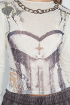 Featuring long sleeves and a bold placement print, this top blends Y2K fashion energy with modern streetwear style. Pair it with cargo pants, mini skirts, or relaxed denim for an easy day-to-night look that feels straight out of the early 2000s style playbook.