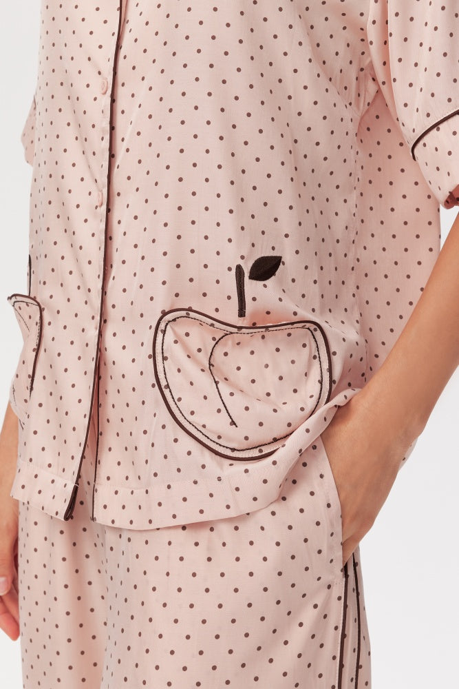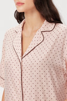With its short sleeves and classic button-through front, Chrissie gives timeless pyjama-shirt energy — but make it chic enough to wear beyond the sofa. Style it tucked into matching shorts, loose over leggings, or half-buttoned with joggers for that “I just threw this on but still look adorable” vibe.