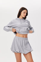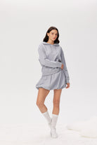 The structured shape keeps that perfect puffed silhouette, while the comfy waistband means you can actually breathe (revolutionary, we know). Finished with subtle Pixie & Peach signature detailing, it’s the kind of skirt that turns a basic top into a full look.