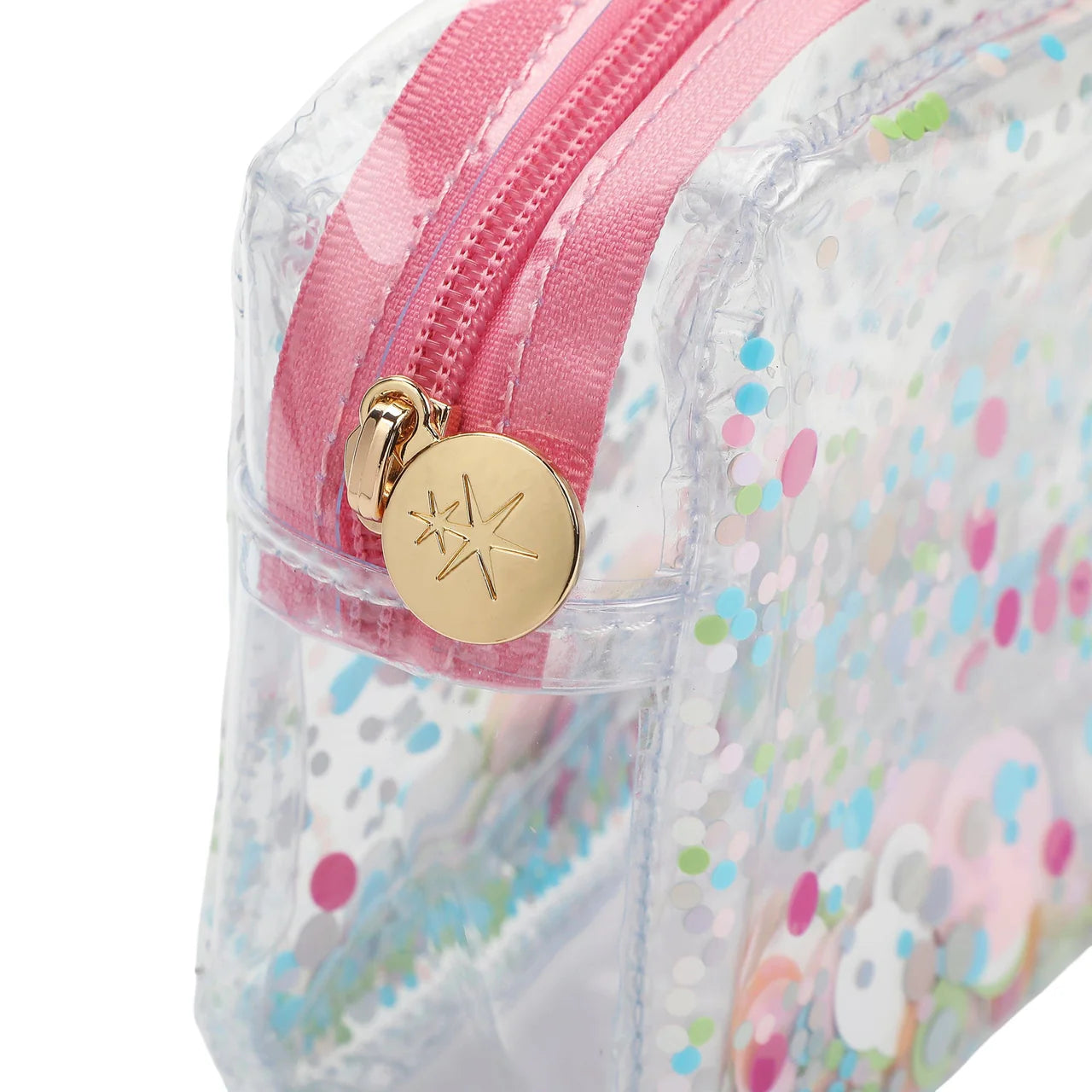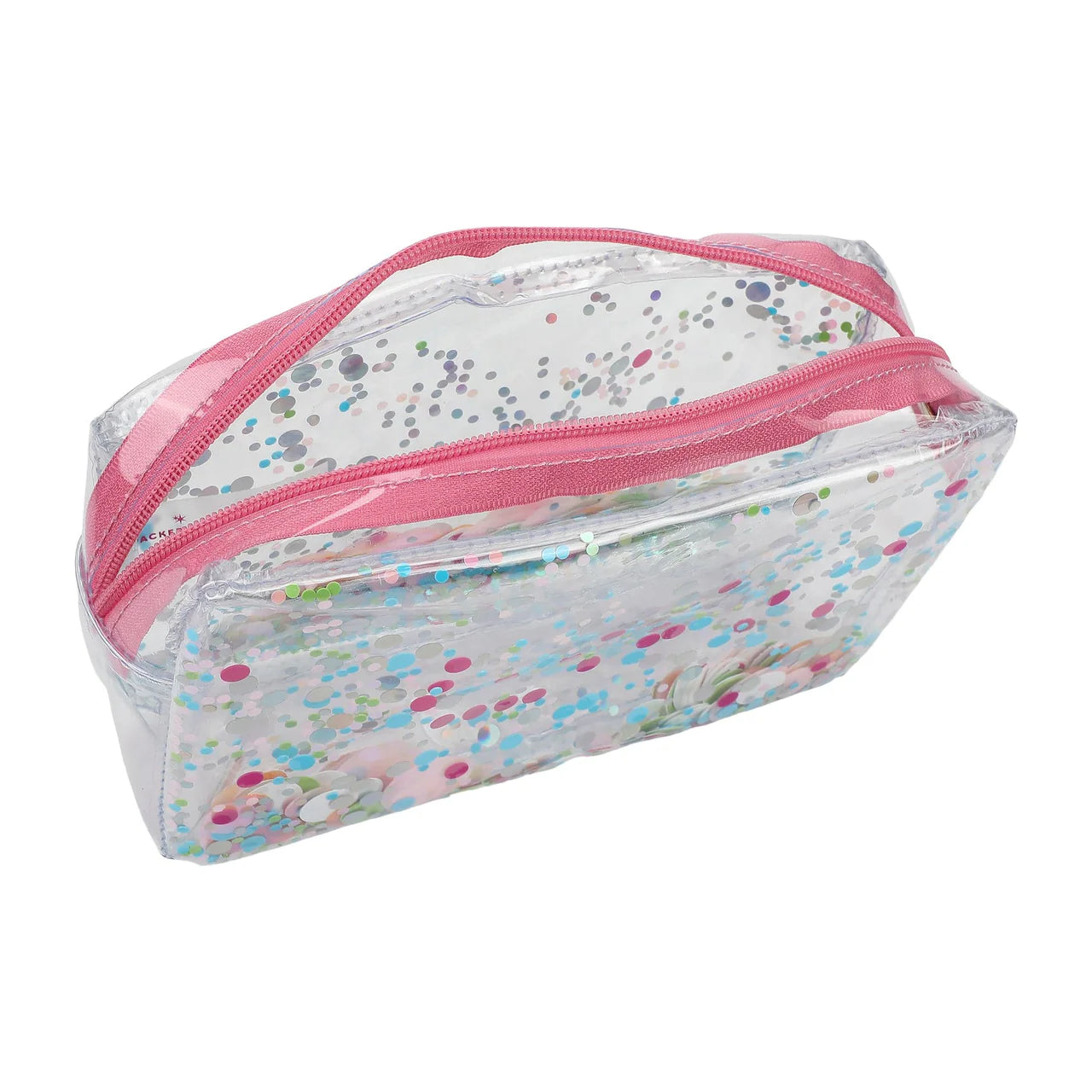 Keep your essentials organised in sparkling style with the Packed Party Clear Confetti Zip Pouch. Made from transparent vinyl and filled with playful trapped confetti, this eye-catching pouch lets you easily see what’s inside while adding a pop of colour and fun to your bag.