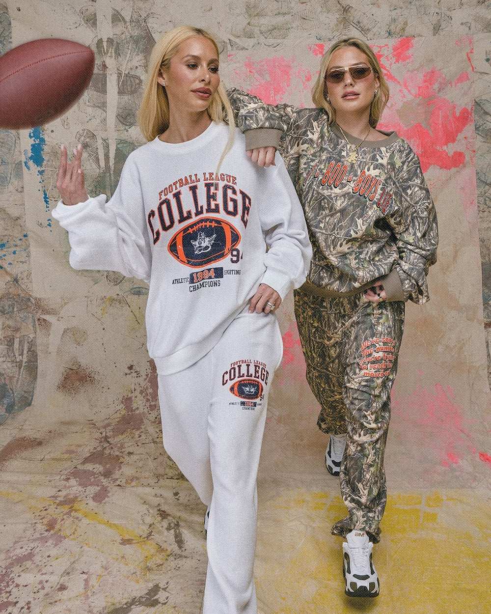 Oversized and effortlessly cool, this camo print pullover features bold pink graphics front and back, letting everyone know you’re on the hunt… but not desperate. Pair it with biker shorts, knee-high boots, and a don’t-mess-with-me stare.