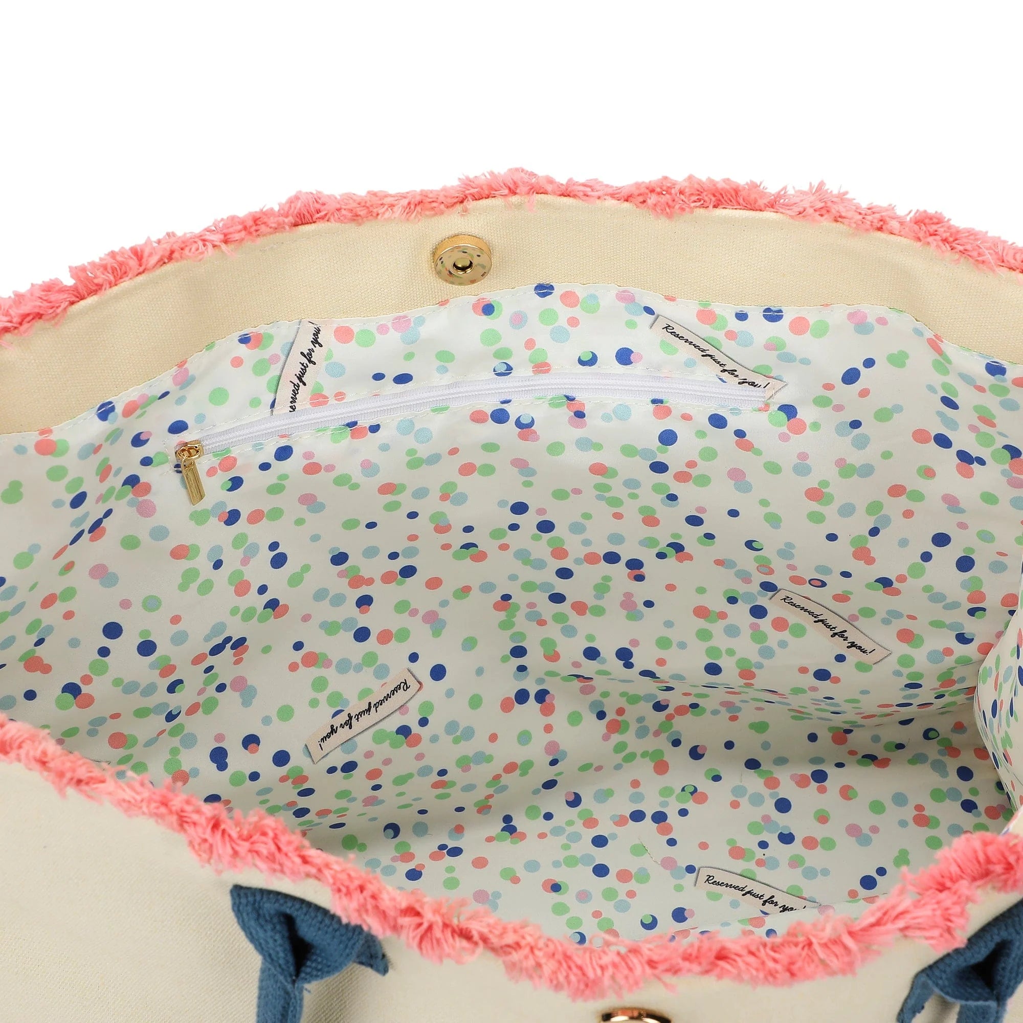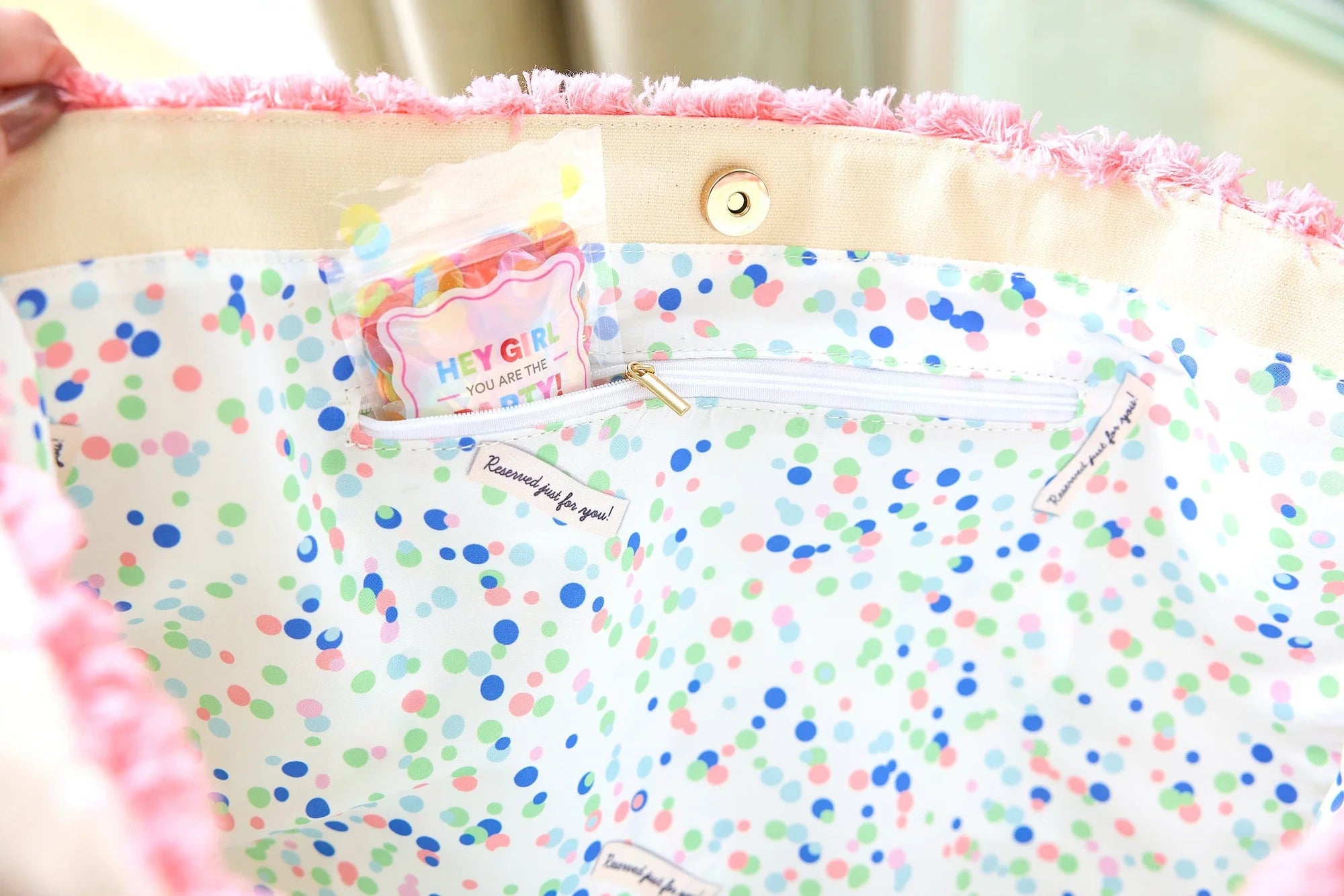 • Confetti-printed interior lining with festive sayings